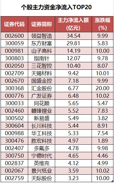 个股来看,今日有2060只个股获主力资金净流入,其中,74股获主力资金净流入超1亿元。主力资金净流入最多,净流入金额为34.54亿元;主力资金净流入居前的个股还有、、、、等,净流入金额分别为29.81亿元、14.19亿元、12.07亿元、10.4亿元、9.42亿元。