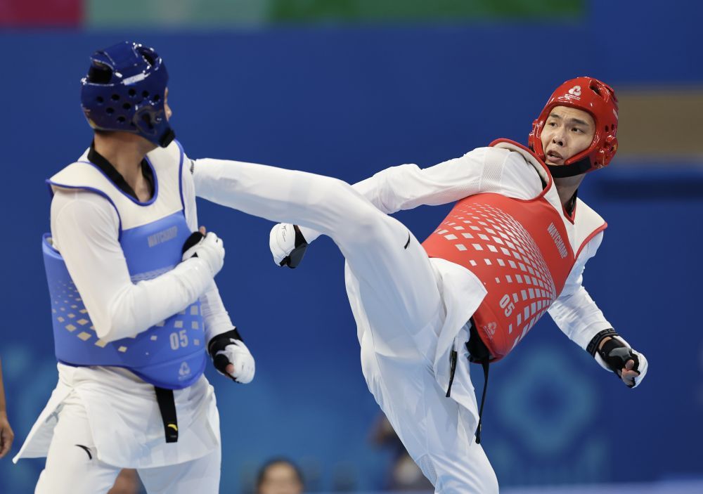 男子80公斤以上级决赛中,广东队选手王要锡在主场迎战山东队选手刘朝阳。首局,王要锡凭借中段和高位连续得分,以12比4轻松取胜。第二局,王要锡率先完成侧踢得分,刘朝阳在追分过程中出现犯规,最终王要锡再下一局,以总比分2比0获胜,为广东队再添一金。上海体育大学队赵鑫博和青海队史文豪摘得铜牌。