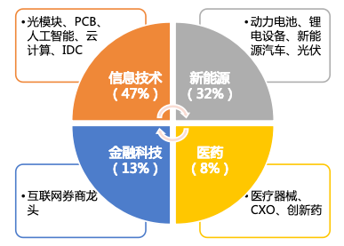 创业板为主要“三创(创新、创造、创意)四新(新技术、、新业态、新模式)”的成长型创新创业企业提供直接融资平台。权重行业方面,聚焦信息技术+新能源+金融科技+医药四大新质生产力赛道,科技成长属性纯粹。