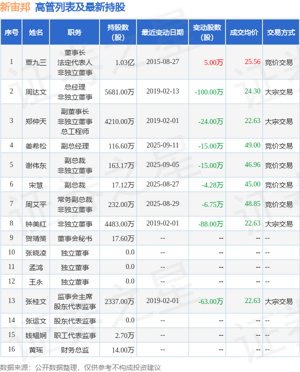 证券之星消息,根据9月30日市场 *** 息、上市公司公告及交易所披露数据整理,(300037)最新董监高及相关人员股份变动情况:2025年9月29日公司董事,高管谢伟东、董事,高管周艾平共减持公司股份11.0万股,占公司总股本为0.0147%。变动期间公司股价上涨6.72%,9月29日当日收盘报50.15元。
