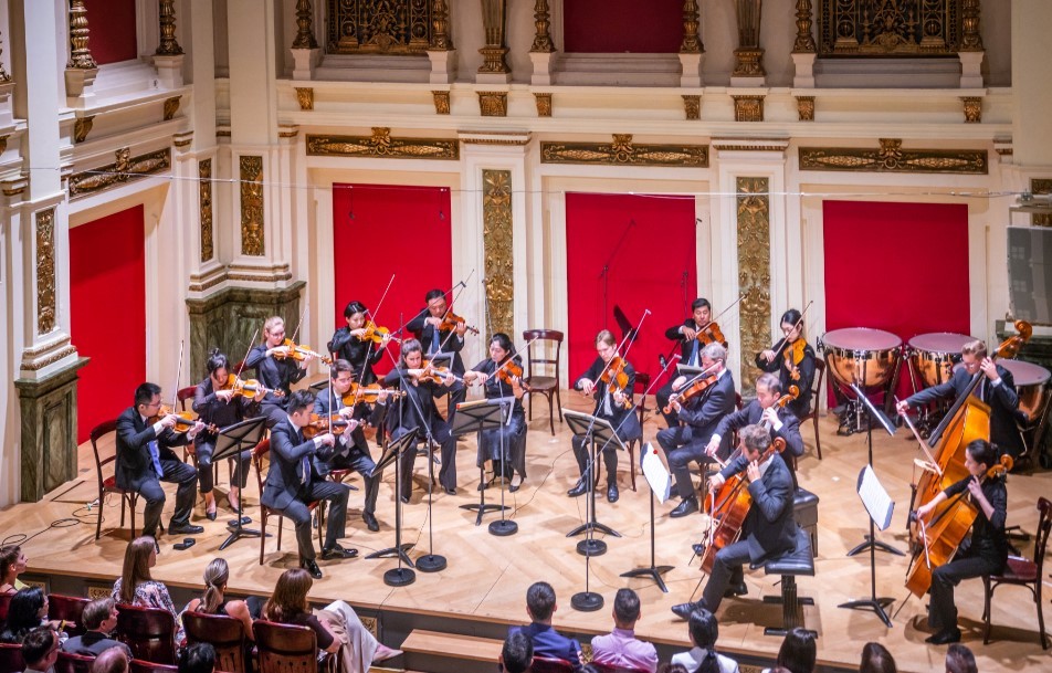 音乐会终章,落在勋伯格早期浪漫主义的宏伟诗篇——《升华之夜》之上。在勋伯格那充满半音化旋律与丰富对位的音乐洪流中,两组音乐家弓弦完美交融,也成为了文化间相互倾听与应答的象征。
