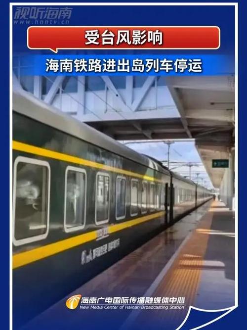 据海南铁路,受台风影响,海南岛中东部有大到暴雨,其中,海南岛东北部有大暴雨。为确保旅客列车运行安全,铁路部门根据降雨影响范围,主动规避风险。10月4日至6日,往返海南岛的过海列车调整至广州白云站、湛江西站终到或始发,安阳往返三亚方向列车部分停运。10月5日,海南岛内所有列车停运。铁路部门结合目前天气预报情况,预计10月6日恢复环岛高铁开行。(央视新闻)