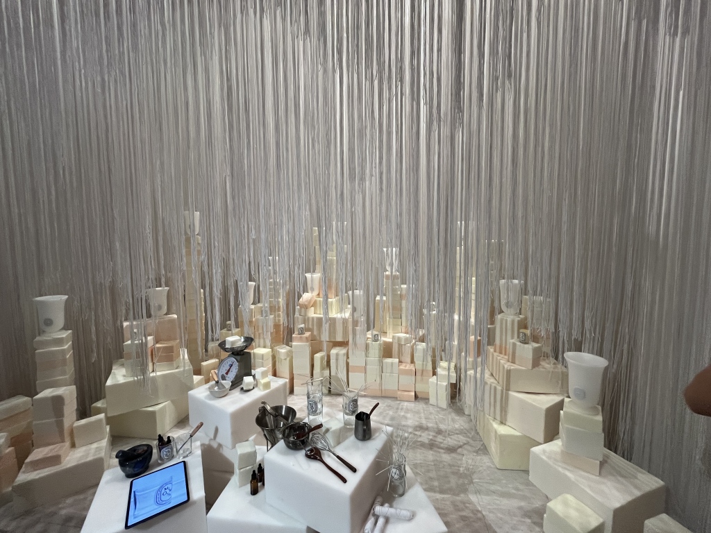 几步之遥的张园西区W4馆,香气扑面而来,游客郑女士跟着闺蜜走进了DIPTYQUE的快闪店。在这里,她们不但能看到蜡烛香薰 *** 的全过程,还能亲手 *** 香薰石膏,甚至亲手将不同香味的蜡烛,做成花瓶、杯子带走。