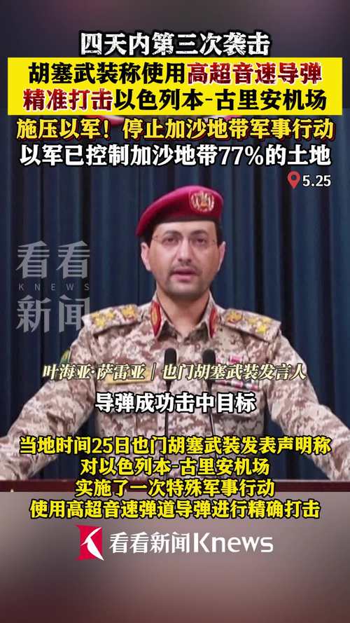 当地时间10月5日上午,也门胡塞武装军事发言人叶海亚·萨雷亚发表讲话称,胡塞武装使用“巴勒斯坦-2”型多弹头高超音速弹道导弹袭击并命中耶路撒冷多处敏感目标,导致数百万以色列人逃入避难所。胡塞武装称,这次行动是对以色列在加沙地带犯下的“罪行”的回应。