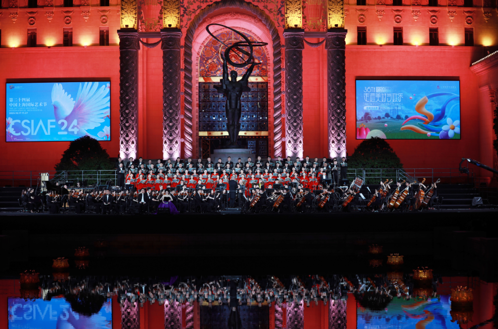 2023年来,艺术节连续三年在上海展览中心喷水池广场打造大型户外交响音乐会,将“城市背景”作为舞台置景,成为一道风景线。今年的演出开放预约后,观众展现出惊人热情,仅半小时便将名额约满。