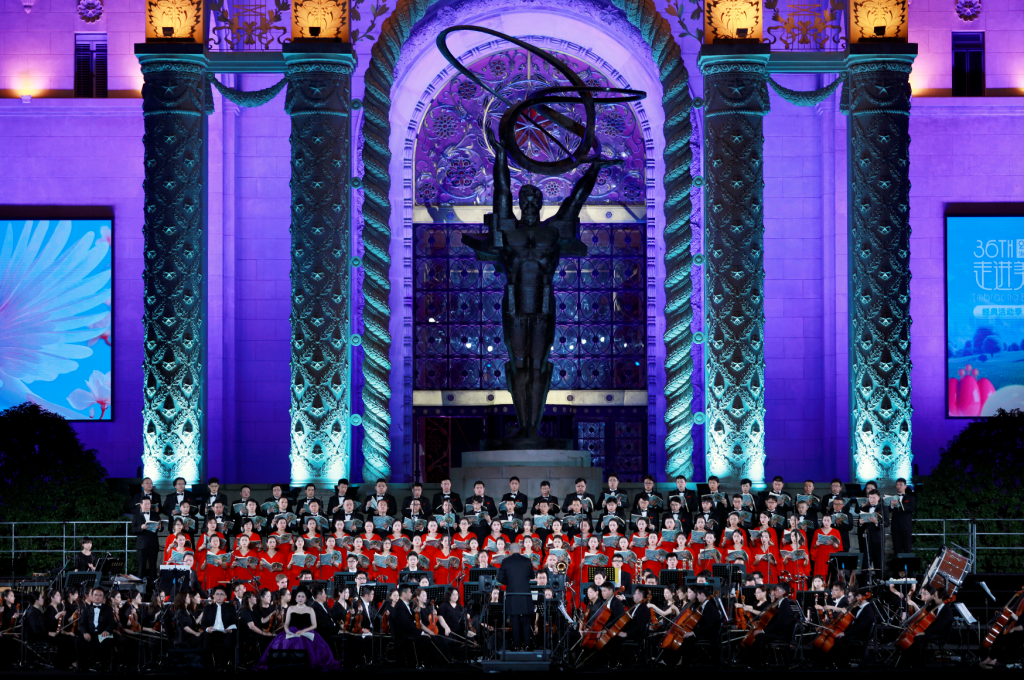 10月5日晚,许忠执棒上海歌剧院、上海国际艺术节节日乐团,在上海展览中心户外喷水池广场 *** 上演《布兰诗歌》,照亮上海的“艺术天空”。近2400位观众现场观演,数十万海内外观众通过艺术节的视频号观看直播。