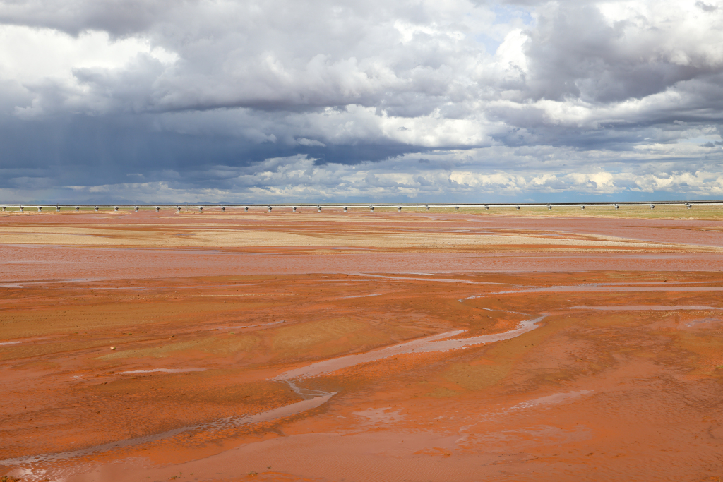 长江北源楚玛尔河,红色的河水像大地的血脉,在河床中静静的流淌