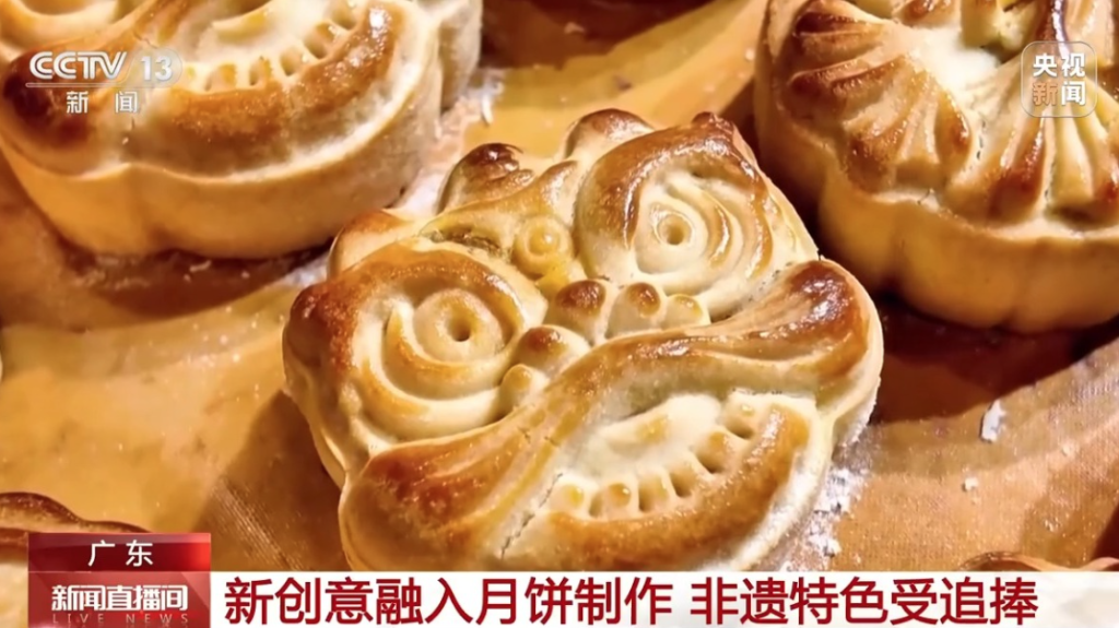 在广东江门,当地以省级非遗为内核,推出了融合醒狮与咏春元素的特色文创月饼,其造型独特口味丰富,吸引了许多消费者购买。