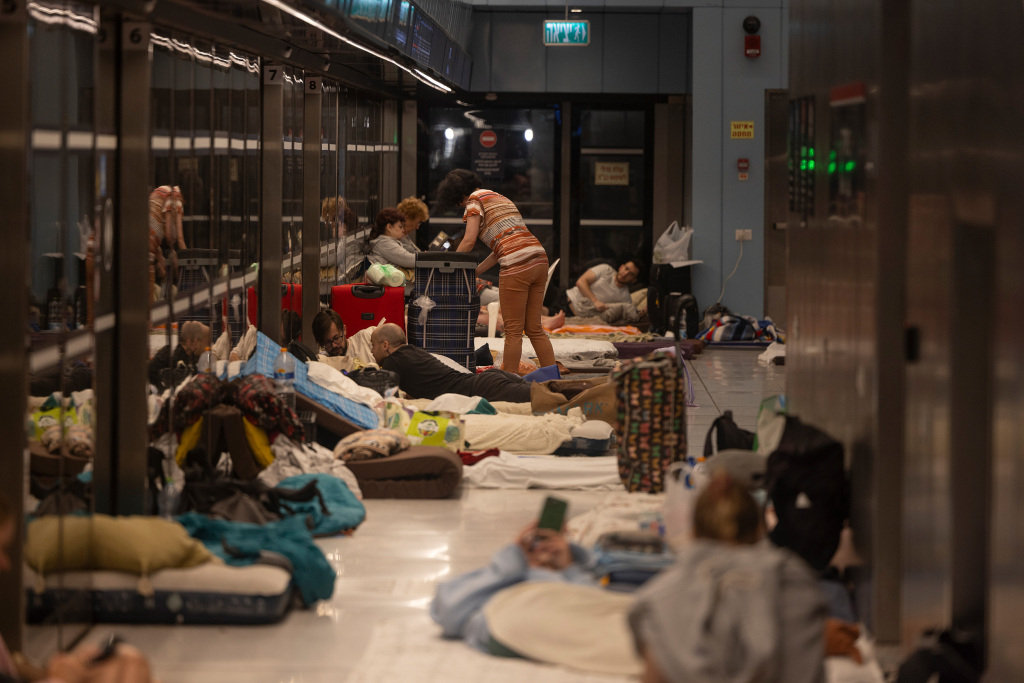 当地时间2025年6月18日,伊朗发动袭击后,以色列民众在一处地下轻轨站内躲避。视觉中国 图