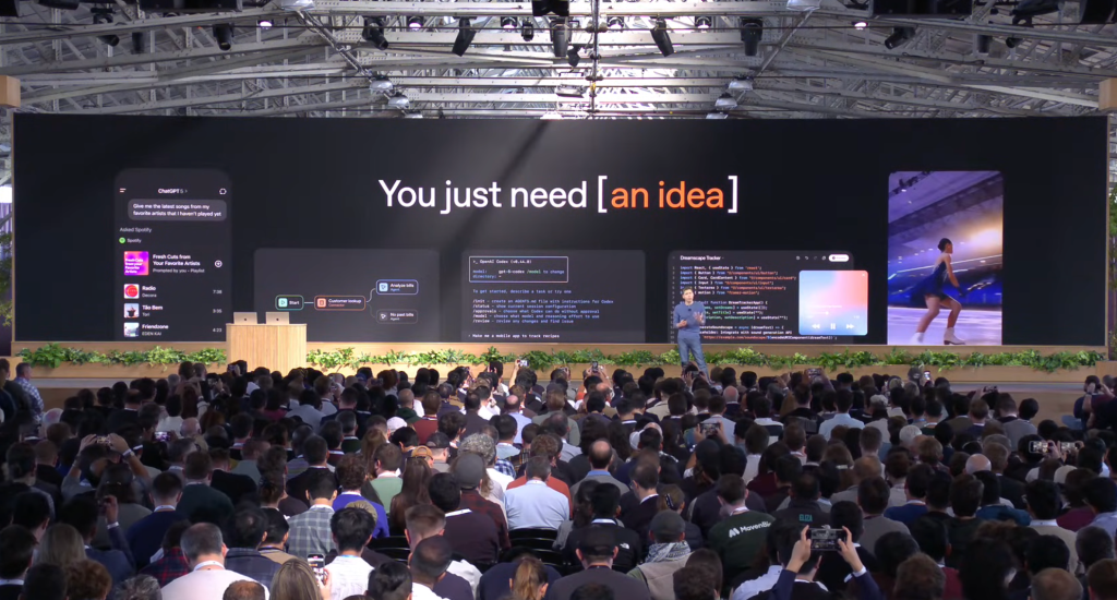 当地时间10月6日,OpenAI在开发者日活动DevDay 2025首日进行了一系列重磅发布,OpenAI CEO山姆·奥特曼(Sam Altman)在开场的主旨演讲中表示:“以前构建一款应用需要几个月,现在只需要几分钟,用AI来构建应用,你不再需要一个团队,只需要一个‘点子’,便会看到一切很快变为现实。”