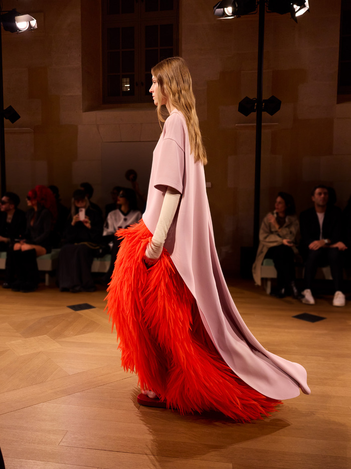 这是一个颇有传承意味的选址。三个月前,Demna在这里举办了一场回顾展览,呈现他自2015年至2025年执掌巴黎世家时期留下的作品,是总结,亦是告别。但巴黎世家的故事还要继续,如今Pierpaolo Piccioli从同一地点出发,为其续写新的篇章。
