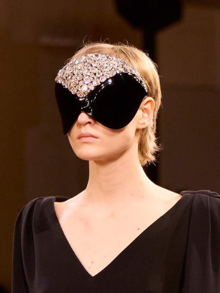 在开场的首套以及后续多个造型中,模特佩戴的蝴蝶形墨镜就明显带有Demna的印记。除了配饰外,被Demna带入高级时装的日常服饰单品,也出现在Pierpaolo Piccioli的造型中,包括有着街头气质的T恤和牛仔裤等。虽然整体占比不高,也在廓形上做了更优雅的改造,但足以展现出Pierpaolo Piccioli对Demna的认可和敬意,因为对日常服饰的革新本就是Demna颠覆性创新精神的一个凝练体现。