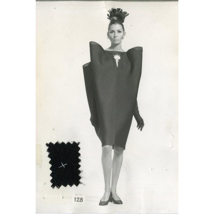 而Cristóbal Balenciaga实现这一效果靠的不是内部结构的支撑,而是合适的面料和恰当的剪裁,这自然形成了巴黎世家追求面料创新的传统。最经典的例子便是巴黎世家的标志性独家面料,由Cristóbal Balenciaga在1958年与面料公司合作开发的Gazar丝绸。这种面料经由特殊编织工艺而兼具挺阔性和轻盈感,成就了Cristóbal Balenciaga在1960年代创作出的经典信封裙(Envelope dress),以及后续直至Demna时期的无数作品。