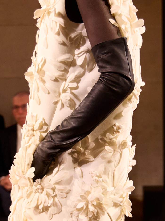 在他的首秀中,诸多造型都有巴黎世家历任设计师作品的影子,不局限于Cristóbal Balenciaga和Demna,还有从1990年代后期开始执掌巴黎世家、奠定了品牌成衣业务的Nicolas Ghesquière。