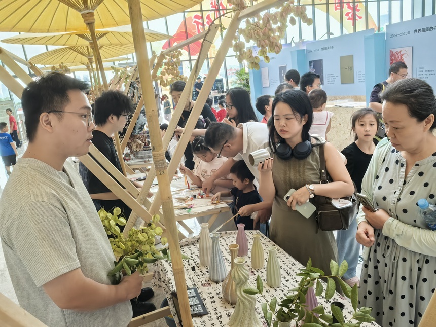 如果说展览是 “视觉盛宴”,那么图书馆二层大厅两侧的艺术文创市集,便是游园会里充满烟火气的“创意角落”。来自江西各大高校艺术类专业的学生,带着亲手 *** 的手工书籍、地域特色文创产品入驻 ——有的将庐山云雾茶元素融入书签设计,有的用剪纸工艺还原滕王阁风貌,独特的创意吸引大批读者驻足挑选。读者不仅能买到心仪的文创,还能与创作者面对面交流设计灵感,让 “阅读 + 艺术” 的融合不再是抽象概念,而是看得见、摸得着的生动实践。