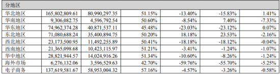 今年上半年,亚冬会的举办带动了东北地区对户外装备的刚性需求,报告期内,探路者来自东北地区的收入同比大幅增长18.18%,而来自华北、华东、华南等国内六大地区以及海外市场和电商的收入均呈现不同程度的下滑;电商渠道和海外市场收入分别同比下滑4.57%和59.76%。