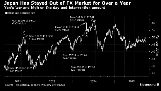 “日本财务省和日本央行都不愿看到日元急贬,我们又回到了让他们不舒服的150-160区间。”Gama Asset Management SA的全球宏观投资组合经理Rajeev De Mello表示。“当局可能先以口头干预*,但如果日元继续走弱,实际干预或很快跟上。”