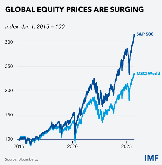 在周三一场为下周IMF和世界银行年会预热的演讲中,IMF总裁克里斯塔利娜·格奥尔基耶娃表示,有利的金融环境为今年迄今为止的全球经济韧性提供了助力。其中对人工智能提升生产力潜力的乐观态度,推升全球股市价格飙升。