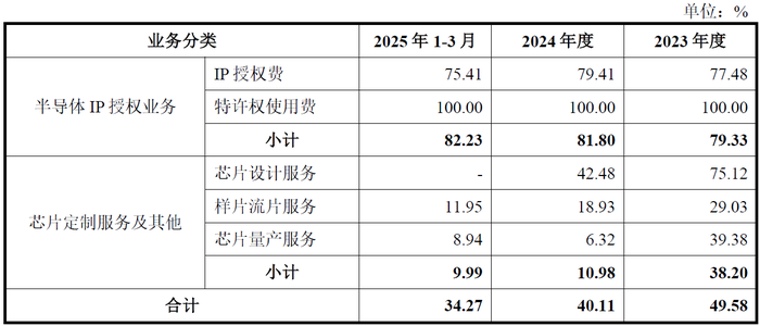 锐成芯微业务可分为半导体IP授权服务和芯片定制服务及其他。