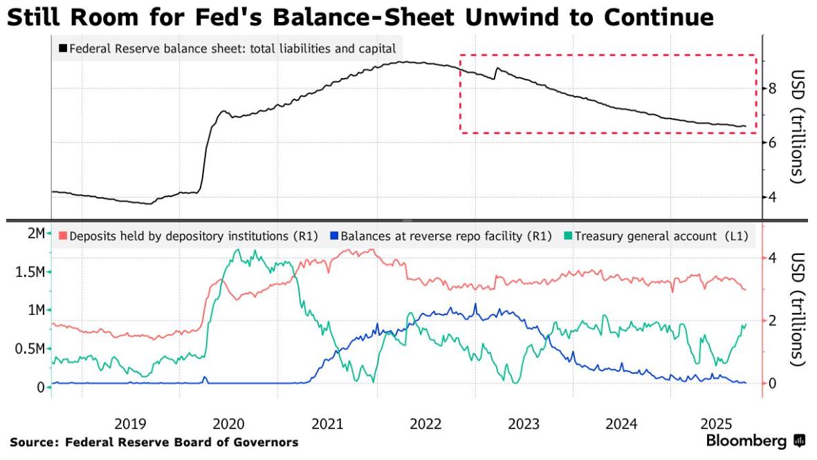 这与鲍威尔、雷马什等人的观点形成对比,后者曾暗示一旦准备金接近充裕水平(可能在今年年底),缩表就应停止。