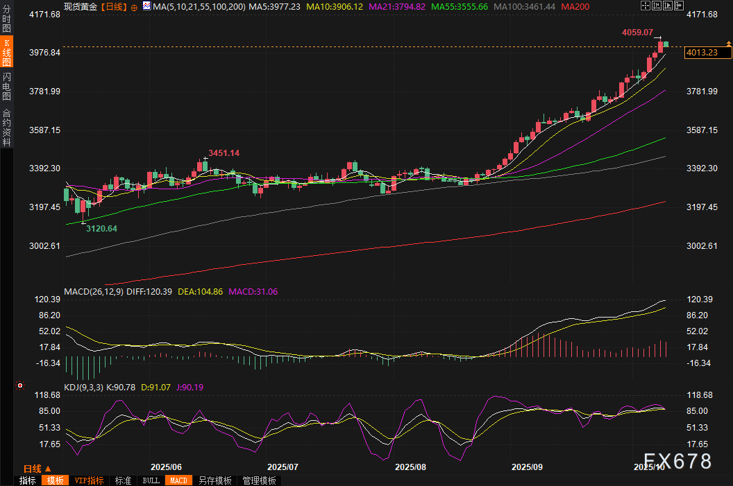 汇通财经APP讯——在全球金融市场动荡不安的2025年,黄金作为传统避险资产的魅力再度绽放。金价周三(10月8日)不仅首次突破每盎司4000美元大关,现货黄金一度刷新历史高点至4059.07美元/盎司,还带动银价创下历史更高收盘价。然而,就在涨势如火如荼之际,中东地缘政治局势的突然转折——哈马斯与以色列达成停火协议——迅速冷却了市场避险情绪,导致周四(10月9日)金价出现回调,值得投资者高度警惕。