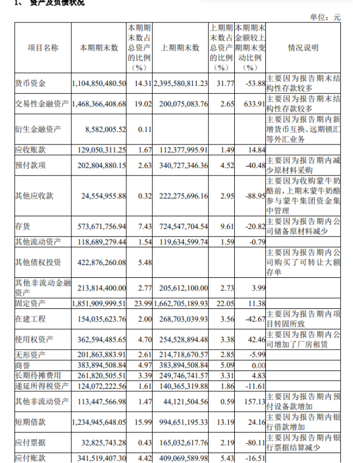 对于这一年多来货币资金减少妙可蓝多在财报中解释称,因为报告期内购买了结构性存款或可 *** 存单和定期存款,因为交易性金融资产规模确实在增多,至今年6月底已增加至16.38亿元。