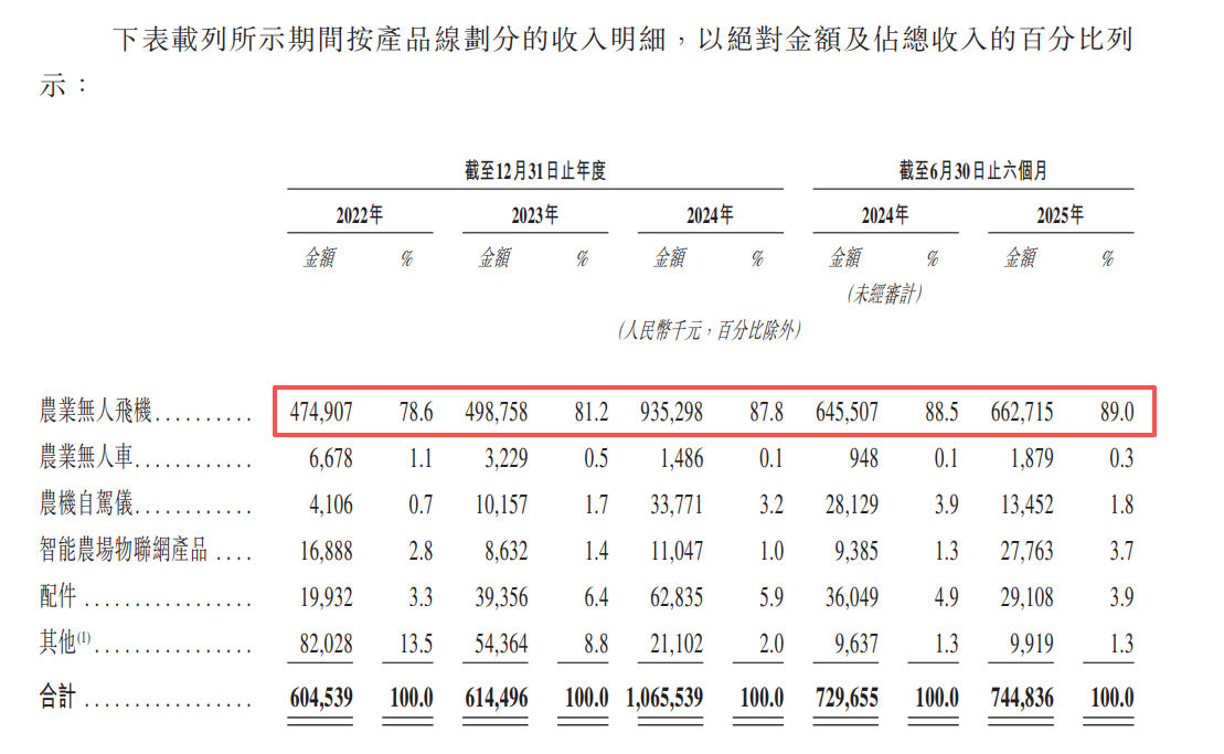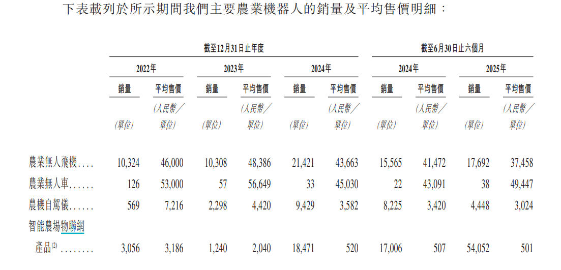 值得注意的是,近两期,极飞科技收入大幅增长,或主要系采取“以价换量”的市场策略。2024年及2025年上半年,农业无人飞机的销量分别同比增长107.81%、13.67%,平均售价分别同比下降9.76%、9.68%。