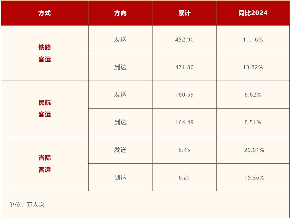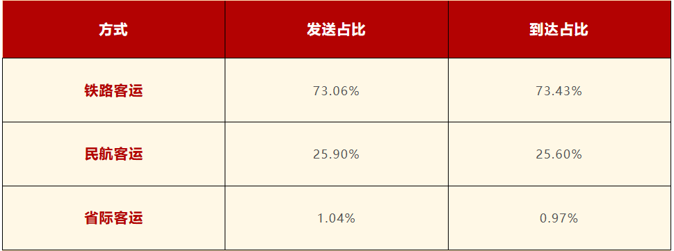 各种对外交通方式发送、到达占比如下: