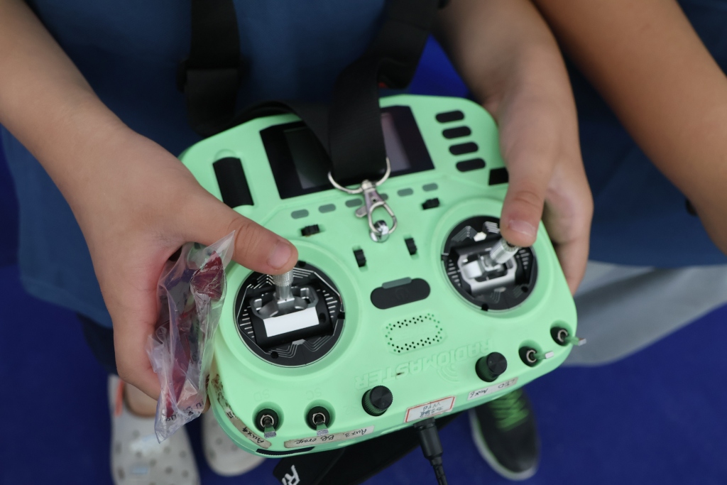 赛事期间,小王在偌大的比赛场地奔波忙碌,但无论走到哪里,他的手里始终会握着无人机的遥控器——一个比他脸还要大的装置。谈及这个遥控器,小王和他的小伙伴们瞬间两眼放光,“这个是启动、这个是加速,微调这里的时候要小心……”他们像身经百战的战士一样,介绍着自己征战沙场的利剑。