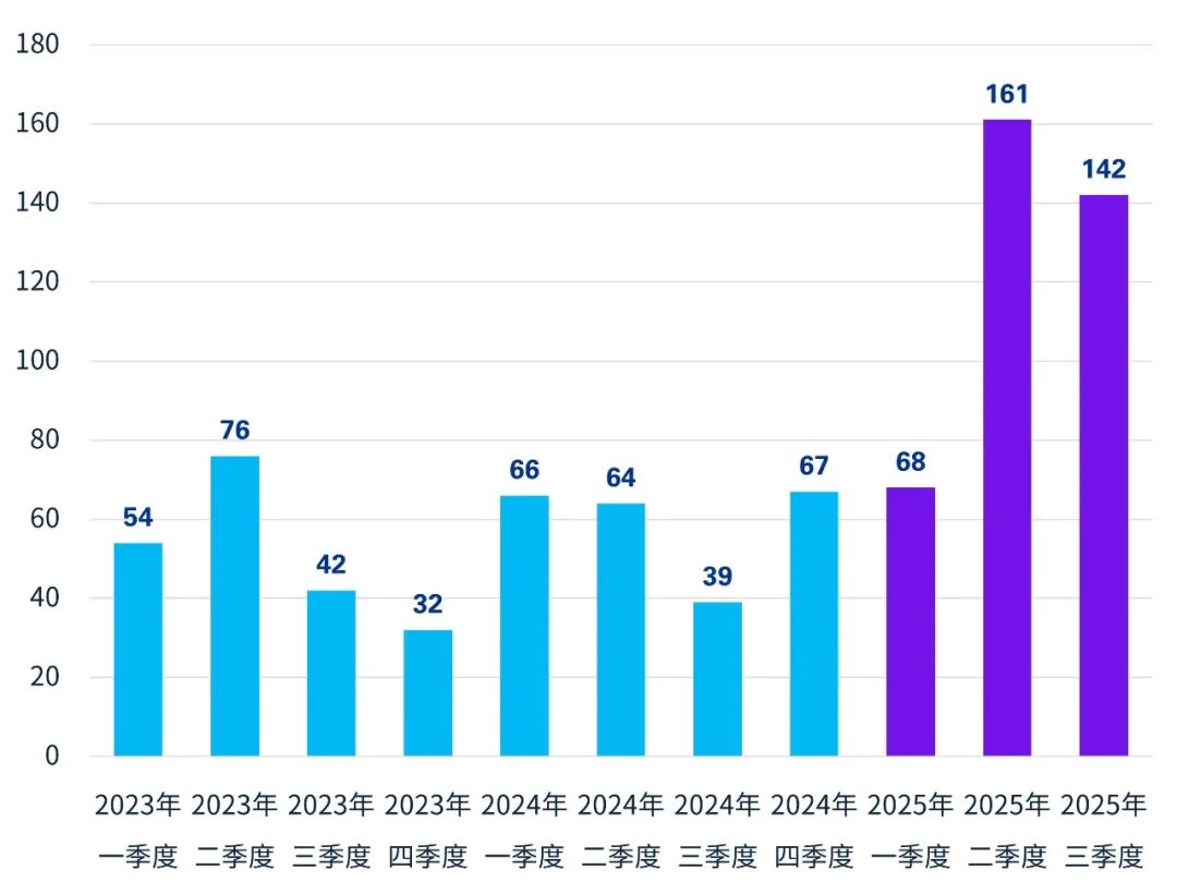 图1:全球IPO活动 (2023年 – 2025年第三季度)