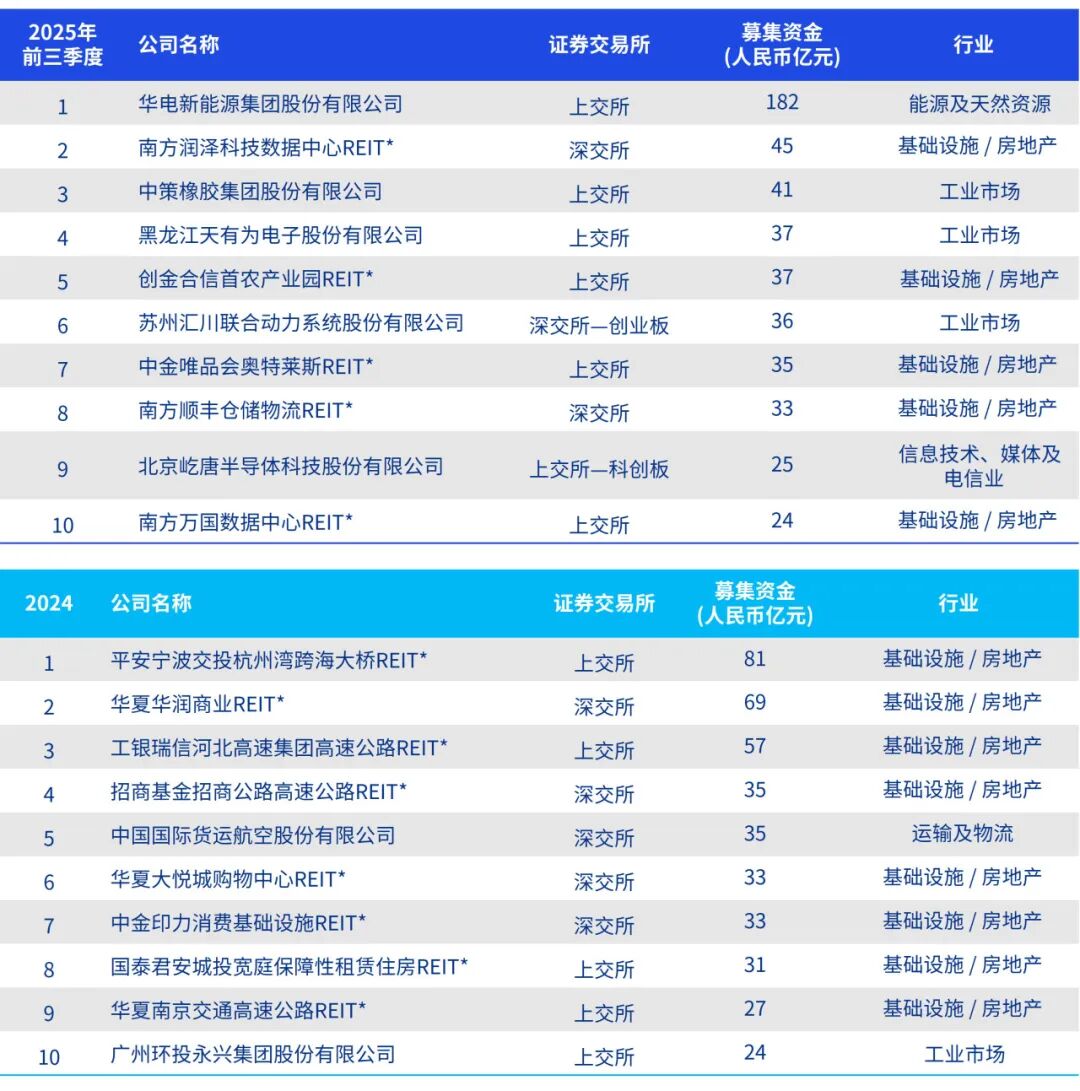 十大IPO募资额占募资总额的21%,与2024年前三季度相比减少约5%
