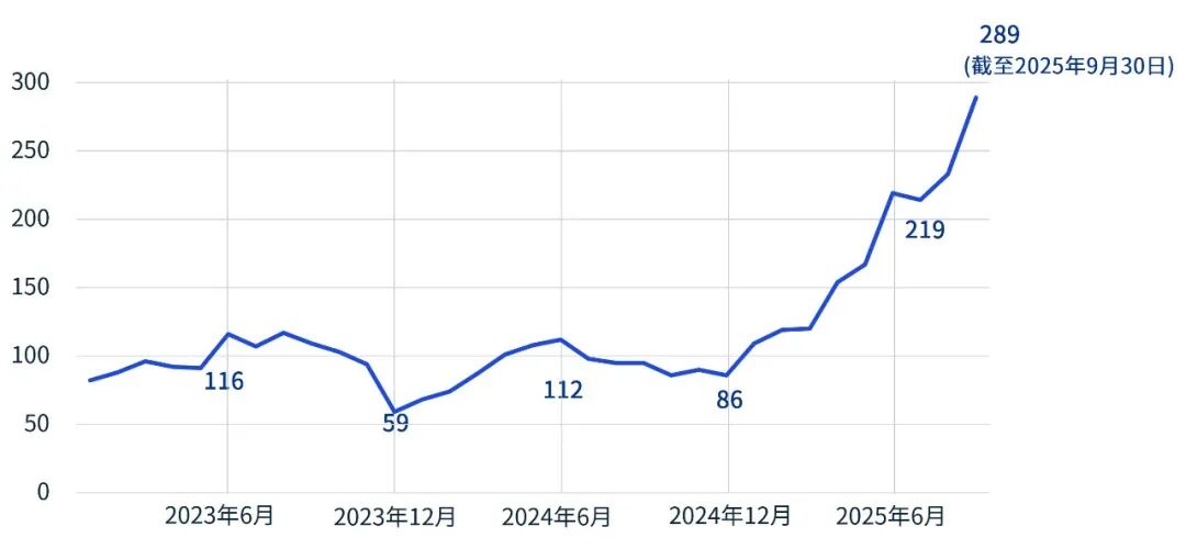 截至2025年9月30日, 在未考虑保密申请的情况下, 正在处理的上市申请数量达289宗, 创正在处理的上市申请数量新高。
