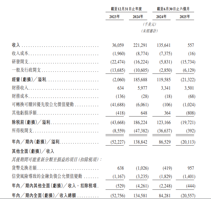 招股书显示,诚益生物仅有阿斯利康一个客户,于2023年、2024年及2025年上半年,来自阿斯利康的收入分别为3610万美元、2.213亿美元及60万美元。来自阿斯利康的BD收入也导致诚益生物的财务表现出现较 *** 动,公司2023年亏损5222.7万美元,2024年扭亏为盈,达到1.39亿美元,但今年上半年公司亏损为2011.3万美元,主要原因是从阿斯利康收取的很大一部分预付款被确认为2024年的收入。