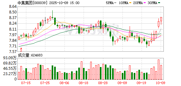 (000039/02039)发布公告,截至2025年10月9日,公司首次回购241万股,占总股本的0.0447%,回购价格区间为8.25元/股至8.37元/股,已使用资金总额为2000万元。