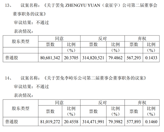 与此形成鲜明对比的是,由此前之一大股东Genie Pharma提出的罢免董事长袁征宇等三名董事的议案均遭否决,反对票比例接近80%。其提名的三名董事候选人也全部落选。
