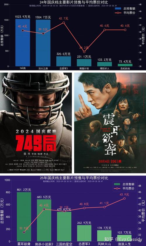 10月9日,根据国家电影局统计,2025年国庆档电影票房为18.35亿元,观影人次为5007万;场次为314.66万场,同比增长12.82%;平均票价为36.64元,比去年同期降低3.75元,同比下降9.28%;国产影片票房占比为98.93%。档期内票房前五名影片分别为《志愿军:浴血和平》4.5亿元、《731》3.45亿元、《刺杀小说家2》2.95亿元、《浪浪人生》2.19亿元、《震耳欲聋》1.75亿元。