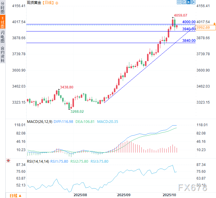 (现货黄金日线图,来源:易汇通)北京时间8:59,现货黄金现报3990.71美元/盎司。