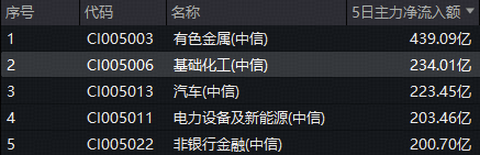 资金面上,化工板块近日备受资金青睐。数据显示,截至发稿,基础化工板块近5个交易日获主力资金净流入234亿元,净流入额在30个中信一级行业中高居第2。