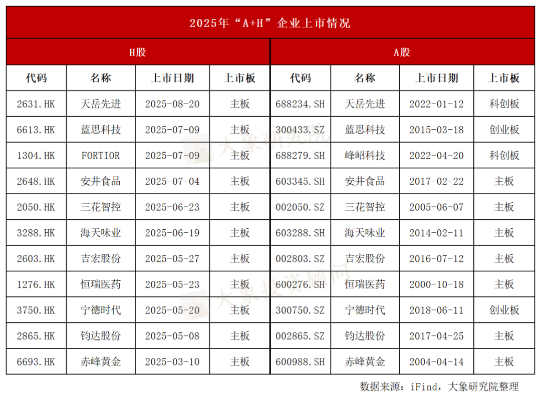 据大象君统计,截至10月10日,2025年已实现“A+H”的企业共11家,是去年全年的近4倍。另外,还有74家A股企业正在排队赴港上市。
