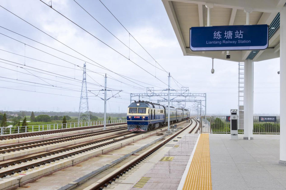 2024年9月19日,沪苏湖高铁联调联试试验列车驶过练塘站。李昶 摄