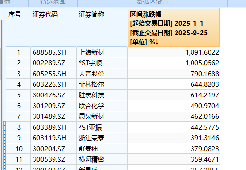 盘面上,停牌核查前一个交易日(9月25日),上纬新材“20cm”涨停,收盘价报132.1元/股,再创历史新高。据Wind金融终端数据,在年初至9月25日收盘的这段时间里,上纬新材累计涨幅约1892%,在A股排名之一。