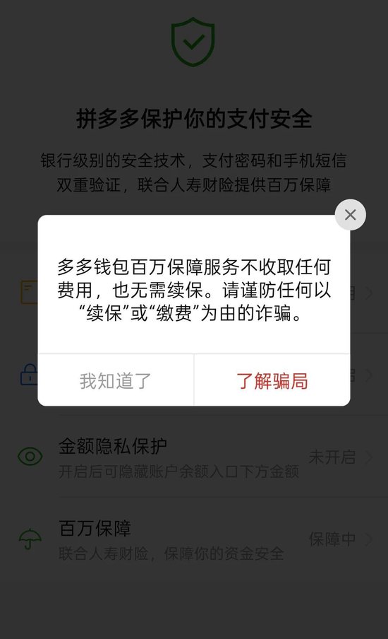 “拼多多百万保障”