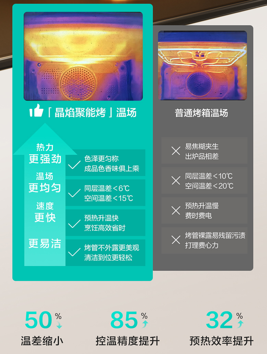 对于选择自主下厨的年轻人来说,厨电的“多功能性”则更为重要。华帝蒸烤一体机FA50P便是一款“全能型”产品,内置68道智能菜谱和10大精控专业烤,能适配各种食材;其搭载的“晶焰聚能烤”技术,能在烤制过程中保持“内外同温”,避免了“外焦内生”的行业痛点。一台设备即可满足多种烹饪需求,极大节省了厨房空间,也让年轻人无需掌握复杂的烹饪技巧,就能轻松做出多样化菜品,真正实现“小白也能变大厨”。