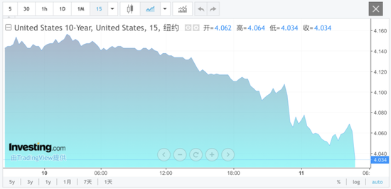 美东时间10月10日,买盘在整个交易时段持续涌入美国国债市场,美国5年期国债收益率一度下跌10个基点,美国10年期国债收益率下挫11.8个基点,报4.034%;美国30年期国债收益率下跌9.4个基点至4.639%。