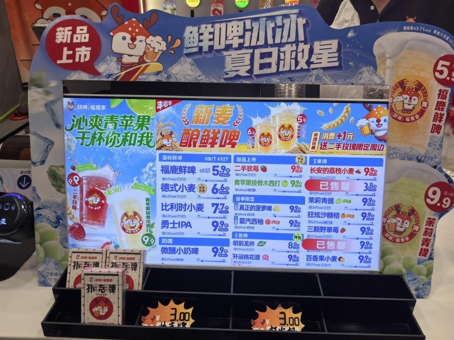 “感觉还可以,我点了果啤,比想象中好喝,但也可能是期待不高,毕竟500ml不到10元。”“品种多、量大实惠!虽然啤酒发酵的香味少了点,但对得起价格。”在大同市的一家“鲜啤福鹿家”门店前,两位消费者告诉每经记者。