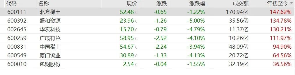 截至10月10日A股收盘,包钢股份、北方稀土分别跌1.55%、1.22%。另据wind,A股稀土指数年内涨幅超100%,其中北方稀土、、、四只概念股年内涨幅已经翻倍。