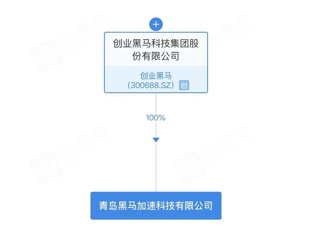 企查查信息显示,青岛黑马加速科技有限公司为创业黑马全资控股子公司,注册地位于青岛市崂山区,成立于2019年10月,注册资本5000万元,法定代表人徐行月。