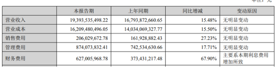 值得一提的是,高企的利息也推高了财务费用,上半年财务费用同比增长67.9%,达到同期史上更高,其中利息费用高达8亿元。