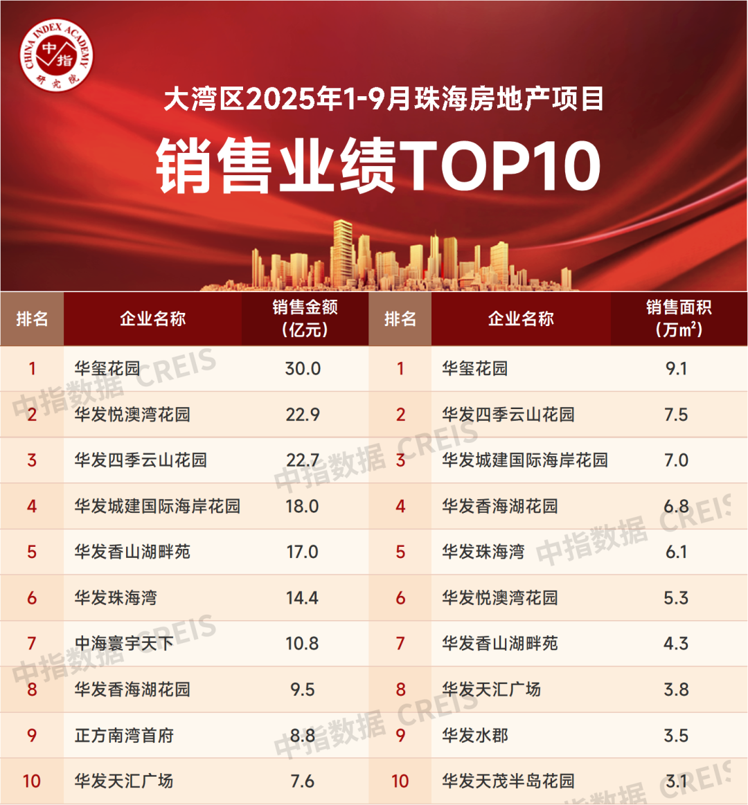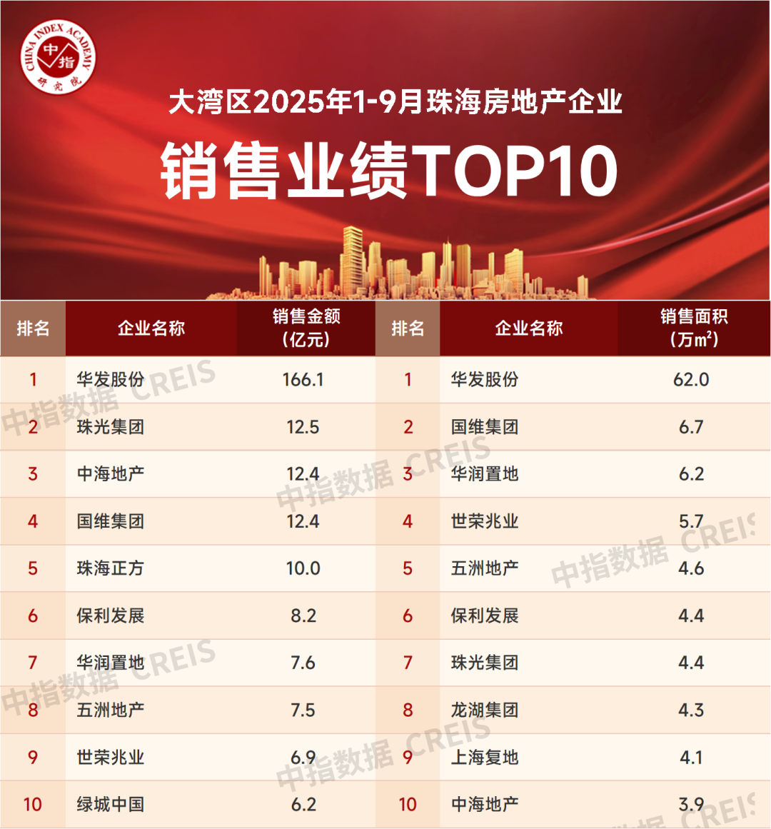 2025年,华发在已经走过的9个月创下了633.1亿元的全口径销售额,排在11位;去年同期,华发同样排在11位,全口径销售额是651.2亿元。
