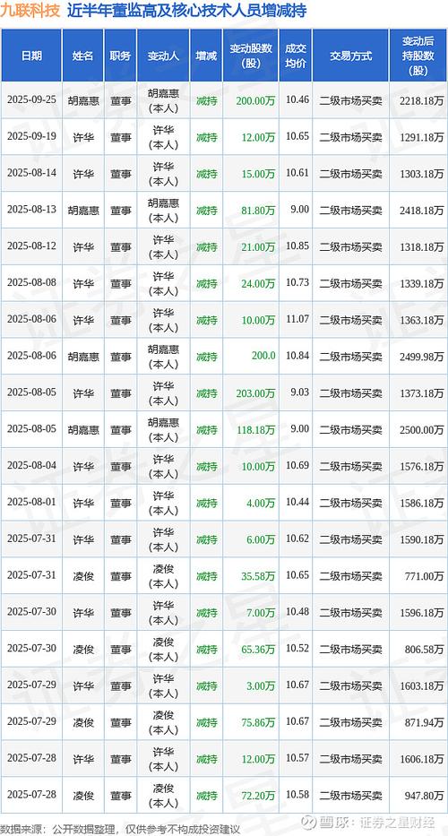 然而,几乎在同一时间轴上,股东、高管减持计划也在同步推进。2025年7月4日,九联科技公告股称,大股东、董事、董事会秘书、副总经理胡嘉惠计划减持不超600万股;公司股东、董事、副总经理、核心技术人员许华计划减持不超400万股;公司股东、财务总监凌俊计划减持不超250万股;东惠州市海纳百川科技有限公司计划减持不超过43.06万股。减持区间为2025年7月26日~2025年10月25日。
